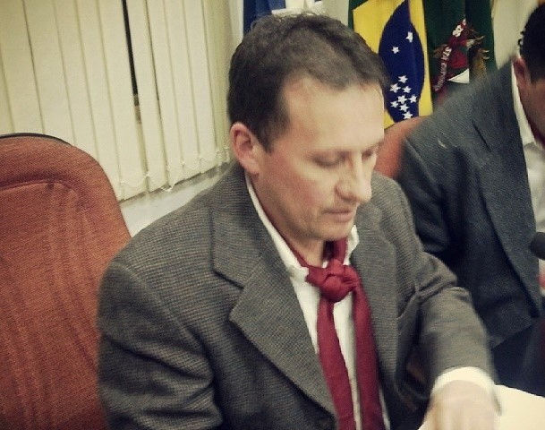 O vereador Helioberto Marcel Ramos (Fino), questiona o prefeito Novelli Sgarzerla (PMDB), sobre projeto enviado para apreciação dos vereadores quanto a cobrança de taxa de iluminação pública nas propriedades rurais de Água Doce.