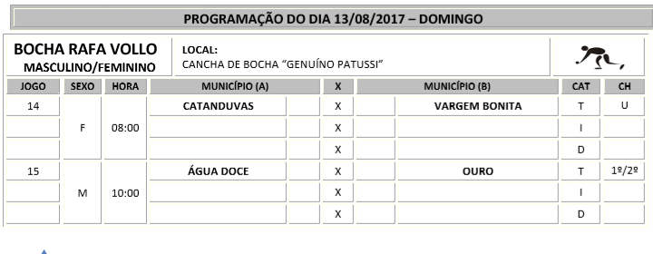E na Bocha Masculino, Água Doce fez bonito nas semifinais e disputa a vaga para o estadual contra a equipe de Ouro, também na manhã deste domingo (13).