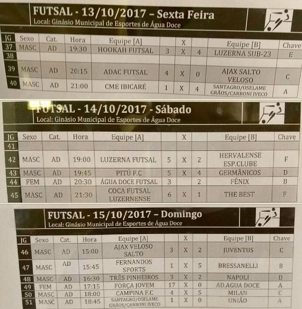 Esaa rodada do Campeonato Aberto de Futsal de Água Doce teve jogos na sexta (13), sábado (14) e domingo (15). A próxima rodada acontece nesta sexta-feira (20) e sábado (21).
