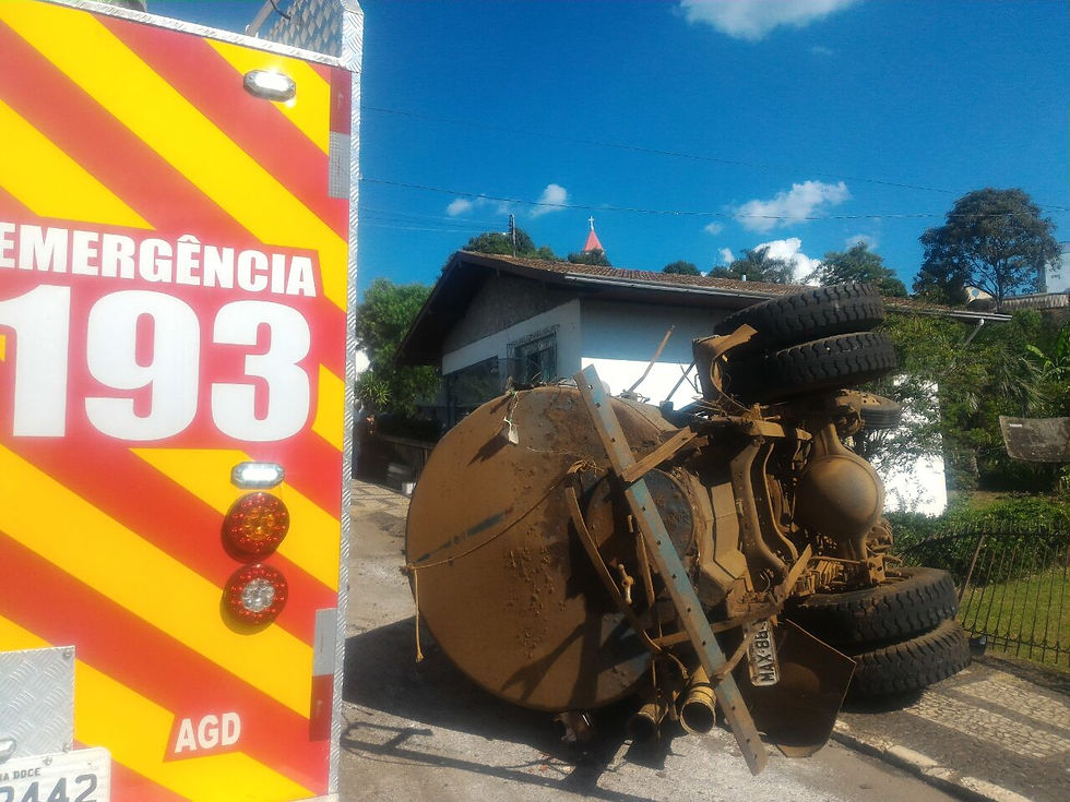 Caminhão da Prefeitura tomba no Centro de Água Doce e deixa três pessoas feridas