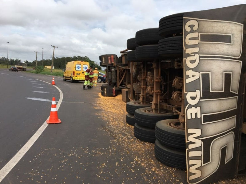 Uma carreta com 27 toneladas de milho tombou no início da manhã de quarta-feira (18), na BR-163, saída para São Paulo, em Campo Grande. O motorista, de 28 anos, que reside em Água Doce, ficou ferido. Por conta do acidente, o trânsito ficou lento no local. Parte da carga ficou no asfalto e outra no canteiro. A carreta havia sido carregada em uma fazenda de Campo Grande e o milho seria entregue em Videira. O motorista teve escoriações e foi encaminhado para uma unidade de saúde. A carga foi retirada pela concessionária responsável pela rodovia. O amigo do caminhoneiro, de 29 anos, contou que, eles vieram de Santa Catarina descarregar uma safra e recarregar uma nova carga de milho para transportar para o estado de origem. Ele viu que a carreta estava tombada no canteiro da pista e logo parou para ajudar. A suspeita é que, quando o amigo realizou a curva na rotatória, a carga tenha se desequilibrado e contribuído para que a carreta tombasse. Ainda de acordo com o amigo da vítima, outro caminhão da empresa virá para tentar recuperar parte da carga. O motorista do caminhão foi socorrido pelo Corpo de Bombeiros e encaminhado até uma unidade de saúde não informada.