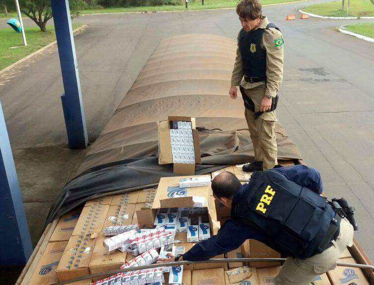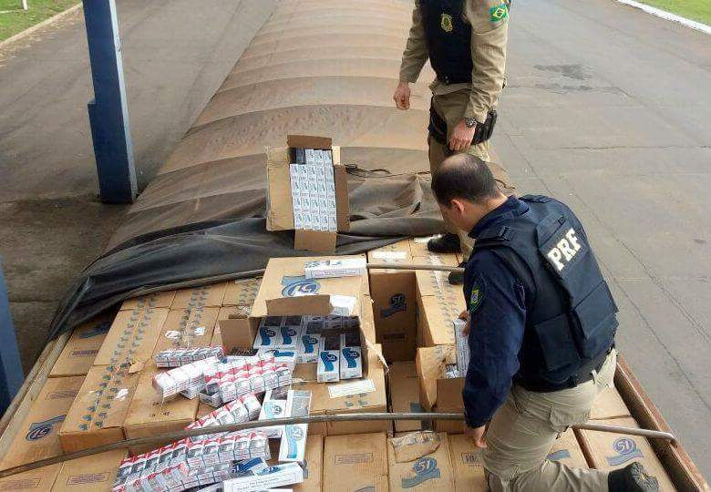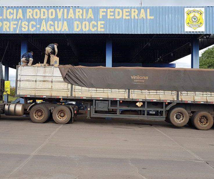 Policiais rodoviários federais apreenderam na tarde desta segunda (07), na BR-153 em Água Doce, um caminhão transportando aproximadamente 425 mil maços de cigarros contrabandeados do Paraguai e prenderam seu condutor.