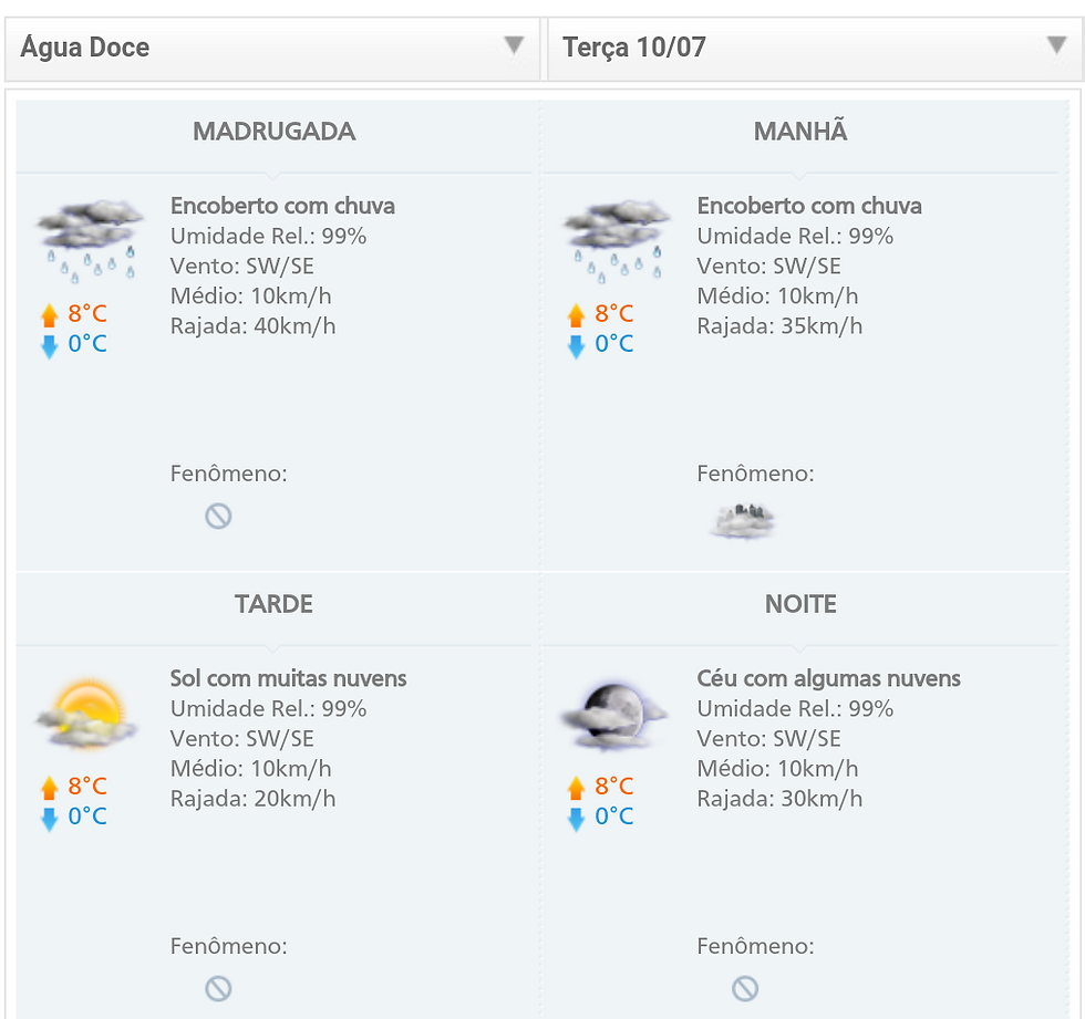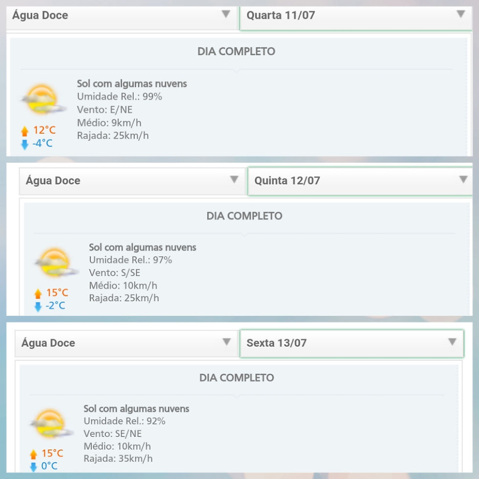 PREVISÃO Água Doce (10 a 13/07)